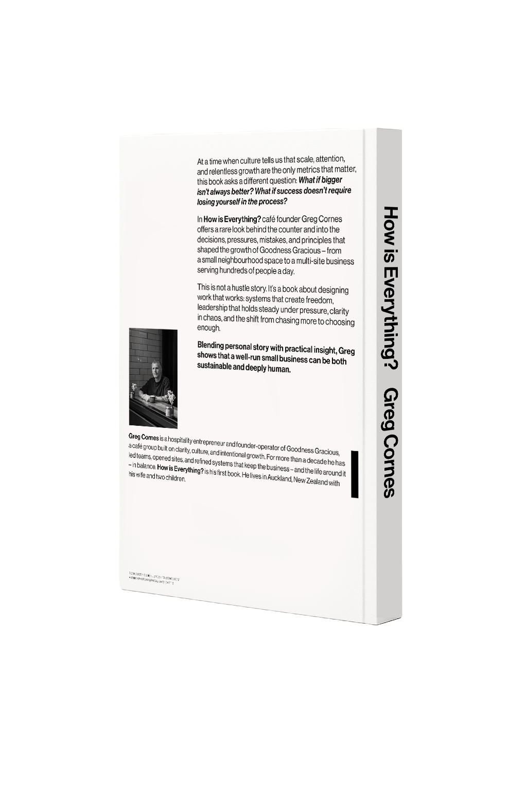 Twenty months in the making, this book blends memoir with practical lessons from over a decade of building Goodness Gracious. Inside, Greg shares the real story: the early days, the mistakes, the pressure points, and the turbulent years that reshaped how he thinks about work, growth, systems, and life balance.